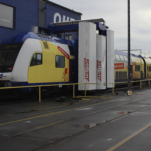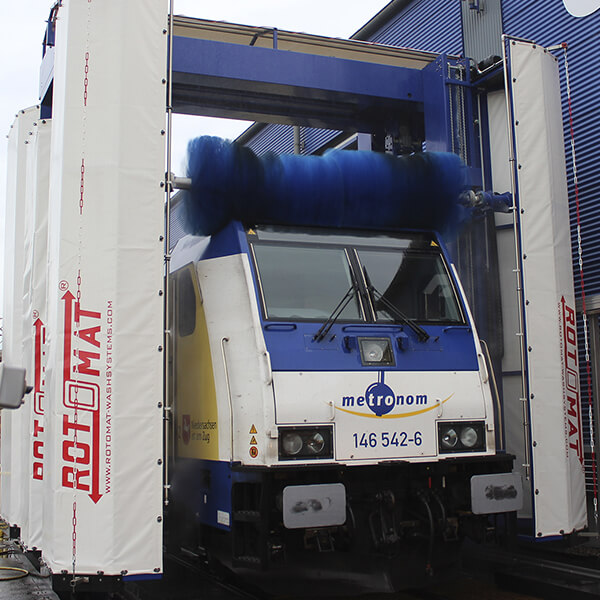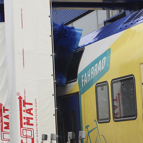 Trams, busses, trucks and transporter as well as trains became washed all-automatic, fast,