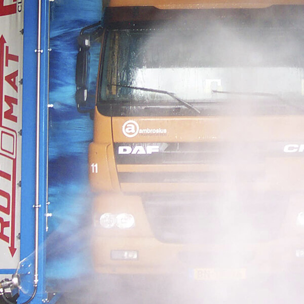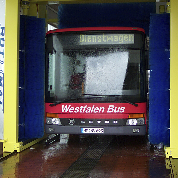 Omnibusse, LKW's mit und ohne Anhänger, Transporter, und auch Kombis und PKWs vollautomatisch, schnell, schonend und gründlich. Die Dach- und Seitenbürsten bestehen aus einzeln auswechselbaren Bürstensegmenten mit weichen PE-X Bürsten.