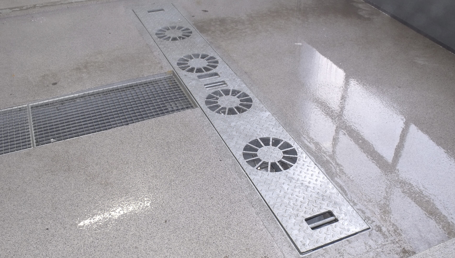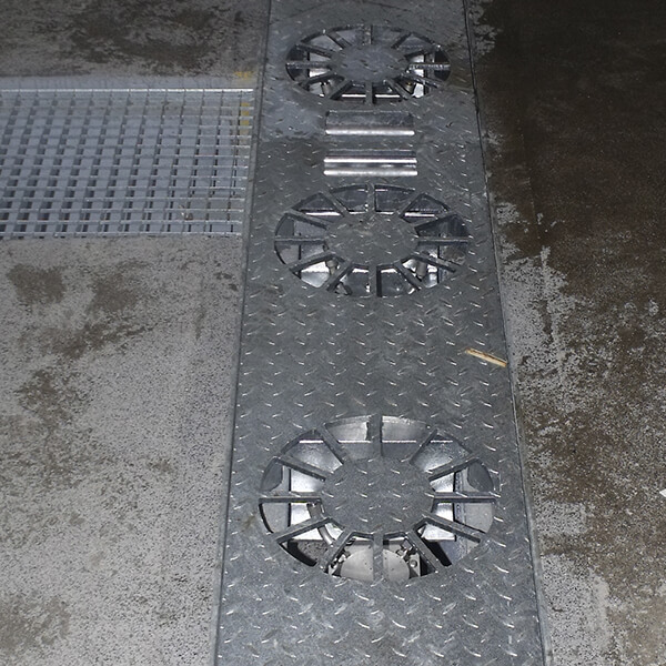 • Rahmenkonstruktion aus verzinkten Stahlrohren mit Gitterrostabdeckung